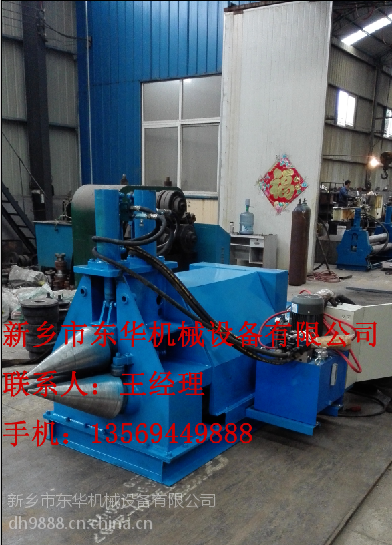 对称式锥体卷板机上棍在两下辊中央对称位置,通过液压缸内的液压油作用于活塞作垂直升降运动,通过主减速机的末级齿轮带动两下辊齿轮啮合作旋转运动,为卷制板材提供扭矩。卷板机规格平整的塑性金属板通过卷板机的三根工作辊(二根下辊、一根上辊)之间,借助上辊的下压及下辊的旋转运动,使金属板经过多道次连续弯曲(内层压缩变形,中层不变,外层拉伸变形),产生永久性的塑性变形,卷制成所需要的锥筒或他们的一部分。该卷板机使用于卷板厚度在20mm以下的钢板。